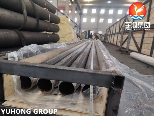Yuhong Group supplies ASTM A335 P9 studded fin tubes. Made of P9 (9Cr-1Mo) alloy steel, they suit high-temperature heat transfer with good oxidation, thermal fatigue, and corrosion resistance. 11Cr stainless steel studs are welded onto the tube surface for better high-temperature scaling resistance. This design combines strength and surface durability. The studded structure improves turbulence, reduces fouling, and maintains stable heat transfer. Widely used in refinery heaters, boilers, and waste heat recovery systems.